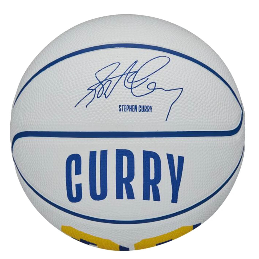 Indoor and outdoor basketball featuring the name, number, signature, and silhouette of your favourite player, Steph Curry, with the design including the official team logo and club colours